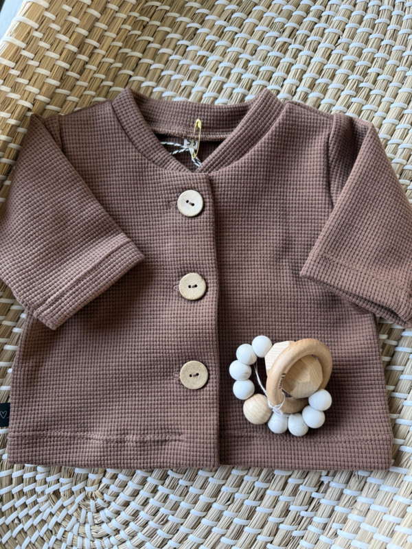 Babyshirtje ribtricot bruinBaby vestje / truitje gemaakt van een mooie ribtricot.